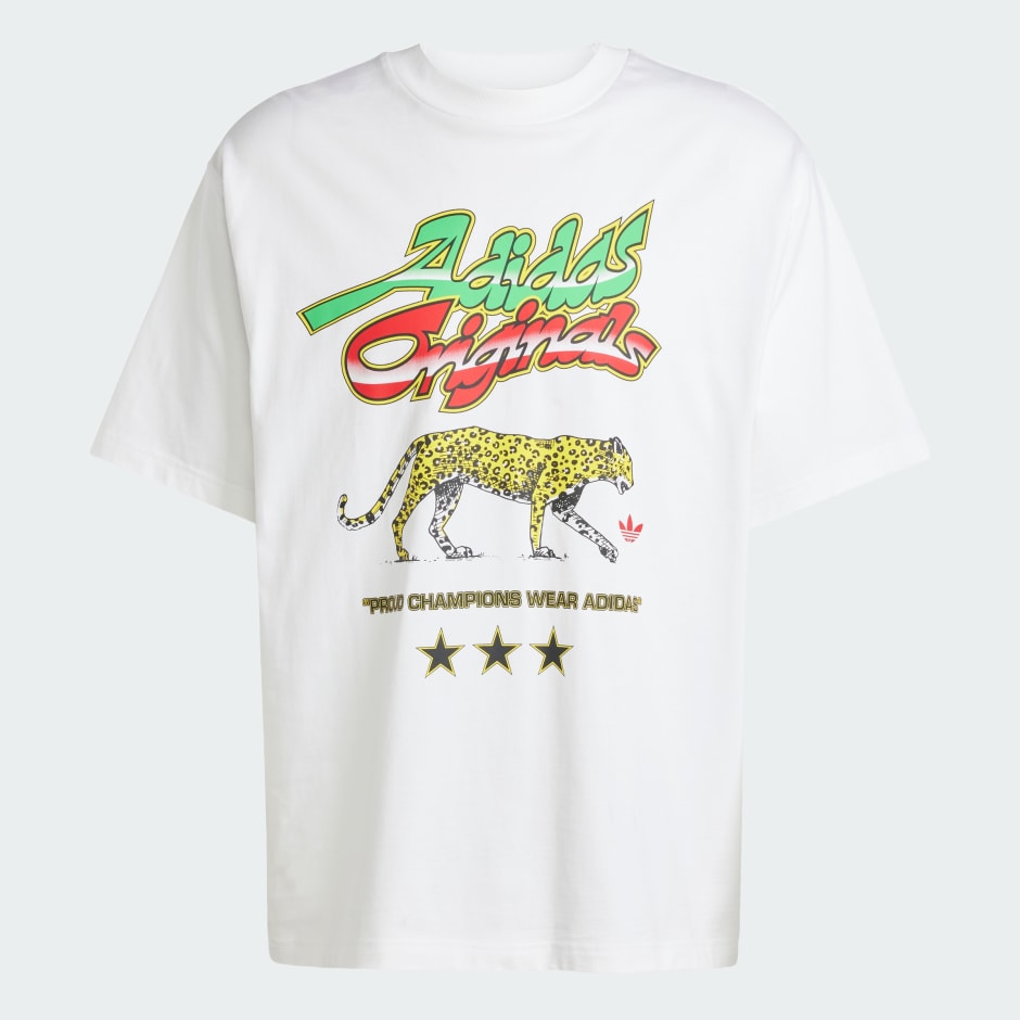 In the ’90s, the world saw streetwear and boxing cultures playing off each other. A nod to that defining era, this adidas t-shirt has a leopard graphic on the front, complemented with other graphics and colours that ground the look in streetwear. The tee has a loose, boxy fit with a slightly dropped shoulder, tighter collar and a slightly shorter length than expected. It’s crafted with a heavy single jersey material that has a premium, hand-wash feel.