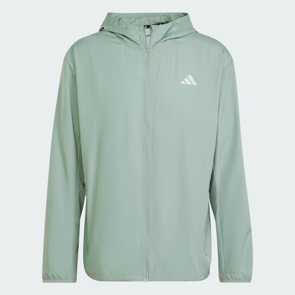 Gear up and get out there. On cool days, this adidas running jacket is a lightweight layer against you and the weather. AEROREADY manages moisture so you stay comfortably dry as the miles add up. Just flip up the hood and cinch the hem for full coverage.
