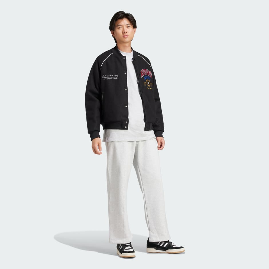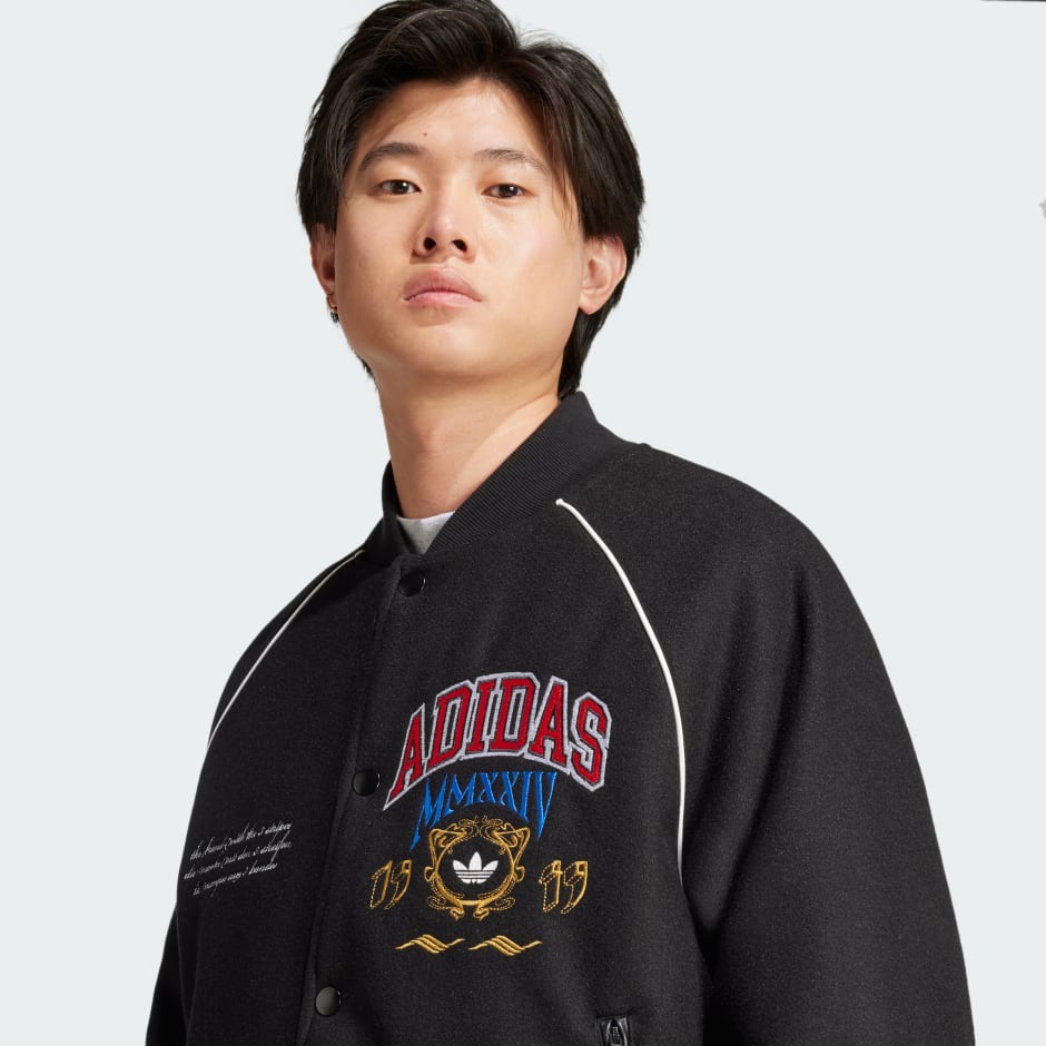 An instant classic with a story to tell. This adidas VRCT jacket nods to our collegiate roots with a casual shape and ribbed cuffs that keep the loose silhouette in check. The soft, durable material is all about comfort, keeping you feeling good wherever the day finds you. Not really about subtlety, the front of the jacket is signed off with different badges to bring in a pop of bold colour.